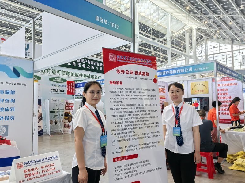 2025年5月15日,第32届河北(石家庄)国际医疗器械展览会在石家庄国际会展中心盛大开幕。为进一步优化法治营商环境,助力医疗器械企业合规发展,石家庄市公证协会组织市直平安公证处及太行公证处、国信公证处进驻展会现场,为参展企业及观展群众提供涉外法律公证服务和法律咨询,成为展会上一道独特的法治风景线。
