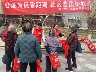 3月17日,平安公证处公证人员来到尚和明珠苑小区,开展公证普法宣传活动